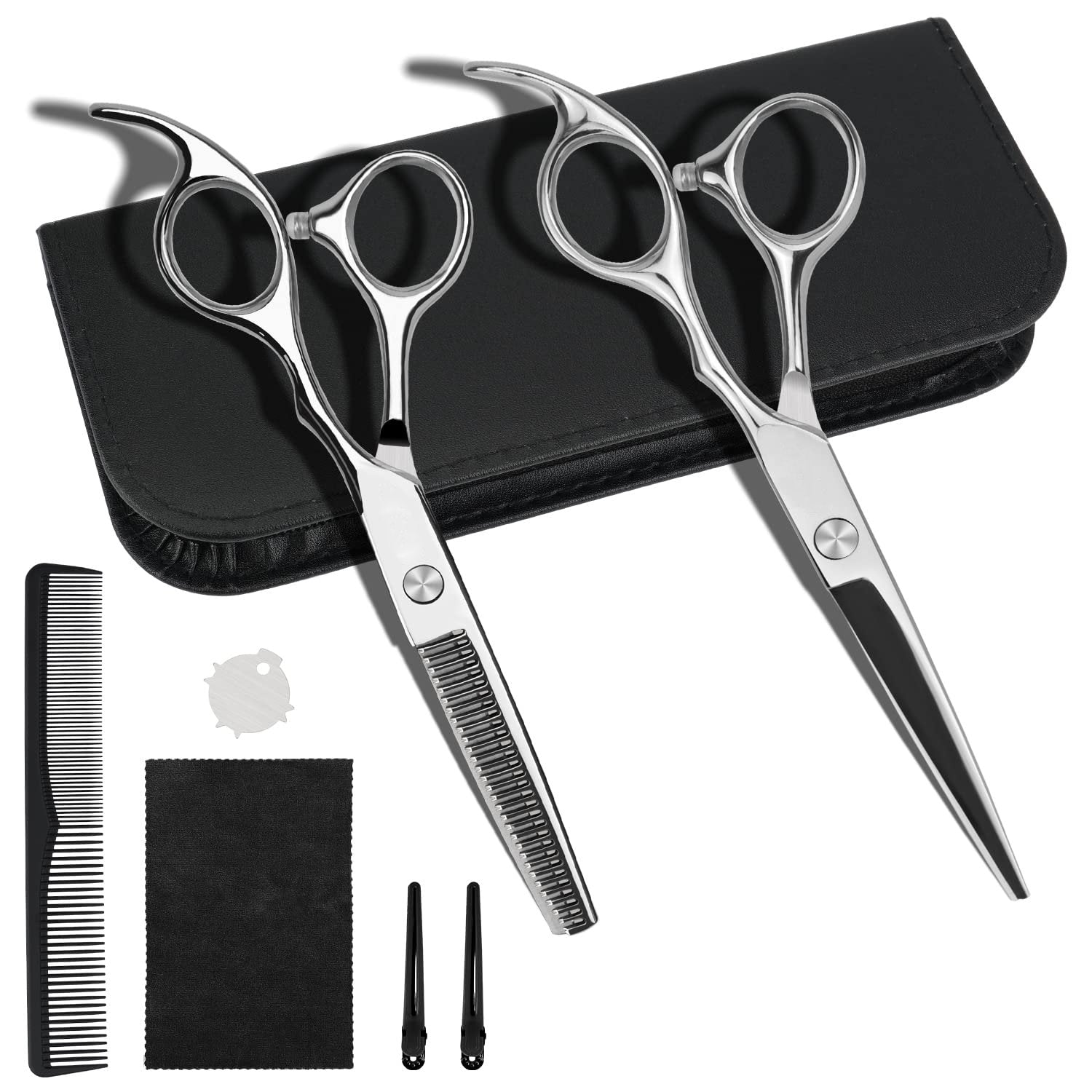 6.5-inch Hair Cutting & Thinning Shears Kit – Silver Scissors with Comb, Clips & Case