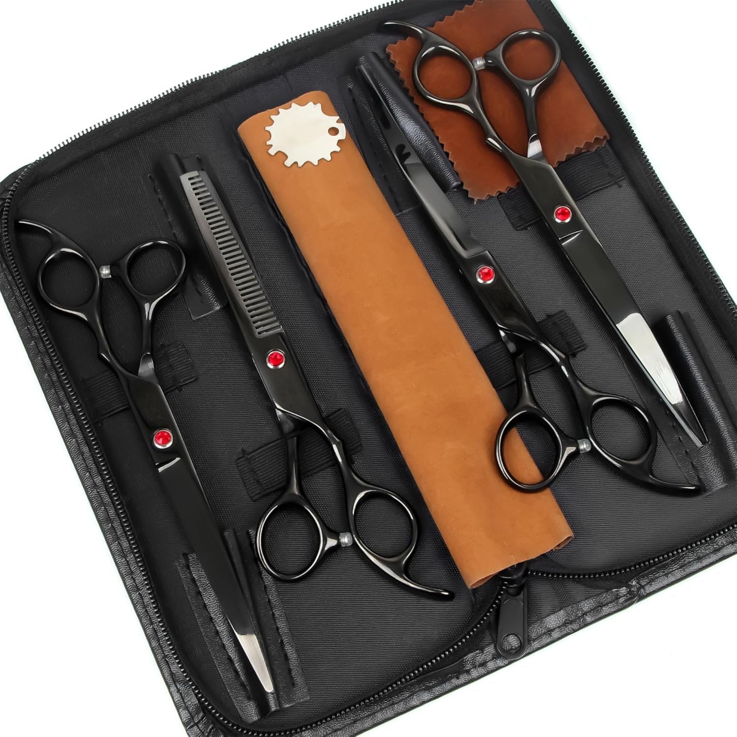 - Professional Titanium Coating: Each scissor features a durable black titanium coating for enhanced sharpness, rust resistance, and a sophisticated look.