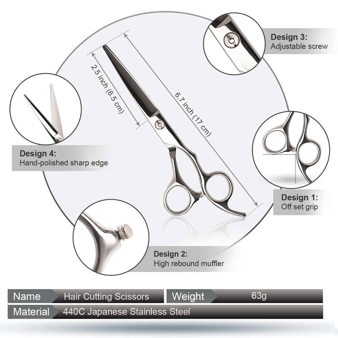Achieve precise and polished haircuts with our Professional 6.5-inch Hair Cutting & Thinning Shears Kit. This essential beauty instrument set is designed for both aspiring and experienced stylists, offering high-quality tools for accurate cutting, seamless thinning, and effortless styling. Its sleek silver and black design ensures a professional aesthetic in any setting.