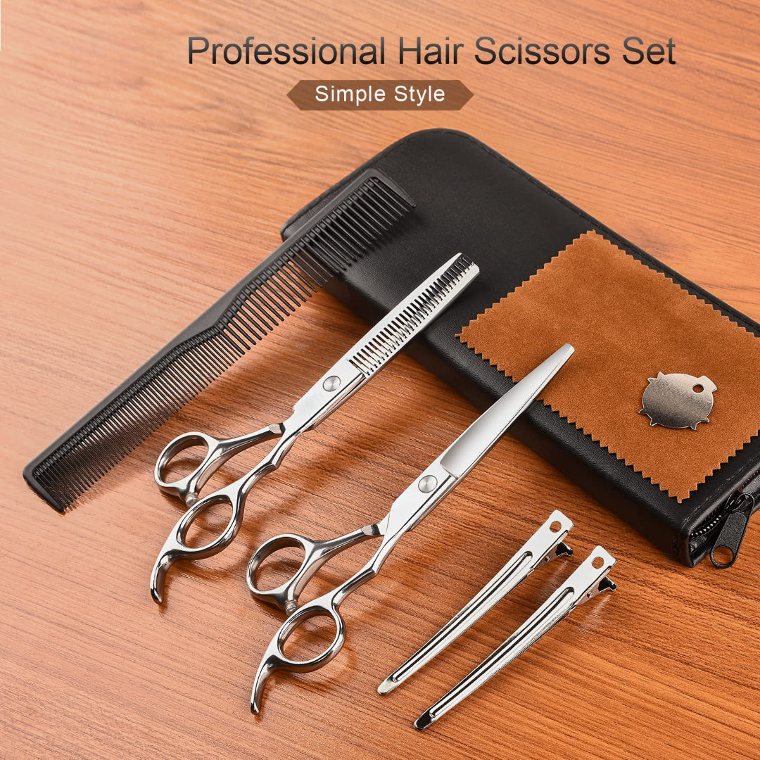 Crafted from premium stainless steel, the shears feature ultra-sharp blades for smooth, precise cuts and a comfortable ergonomic handle that reduces hand fatigue. The included thinning scissors allow you to add texture and layers with ease.