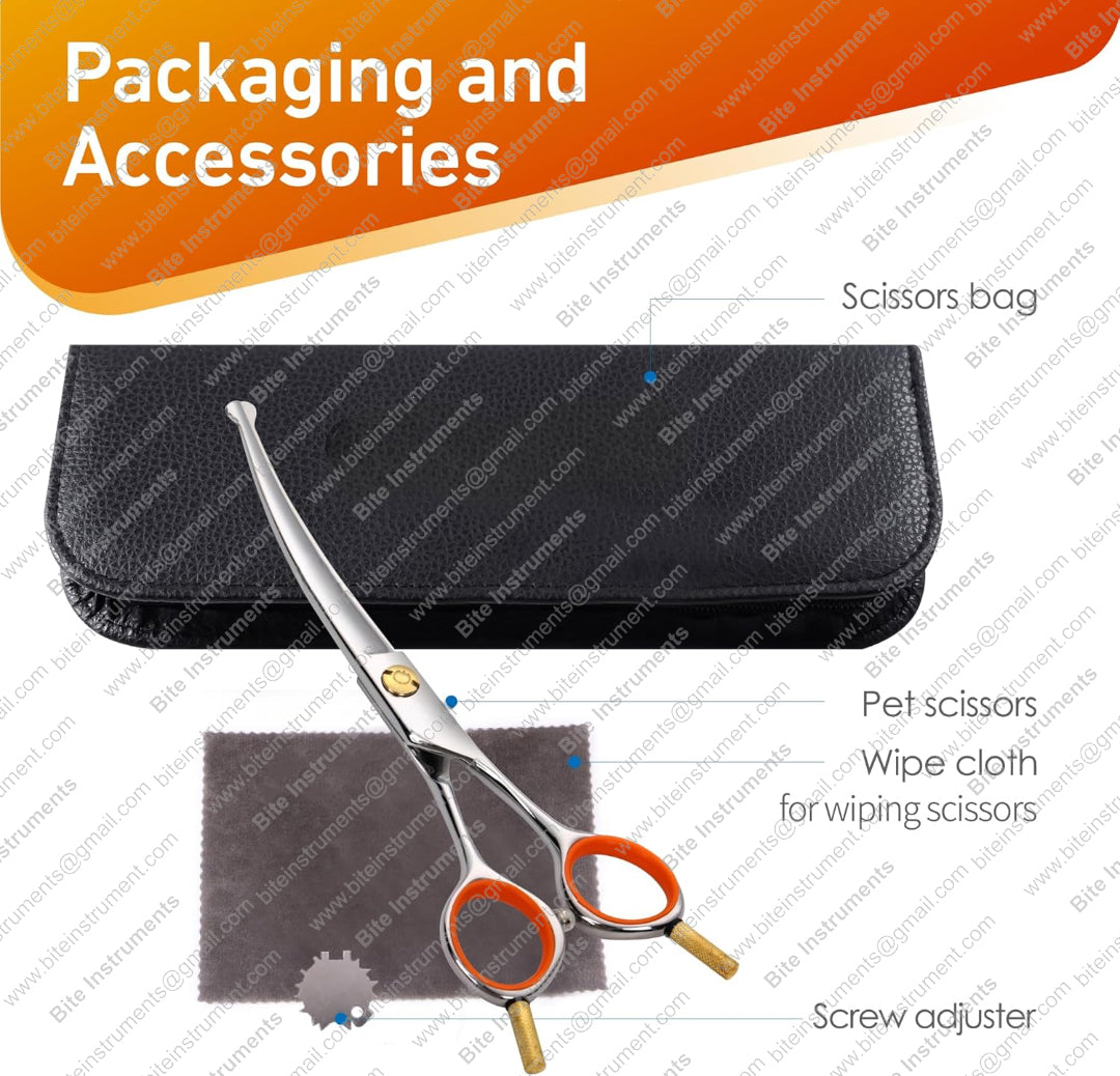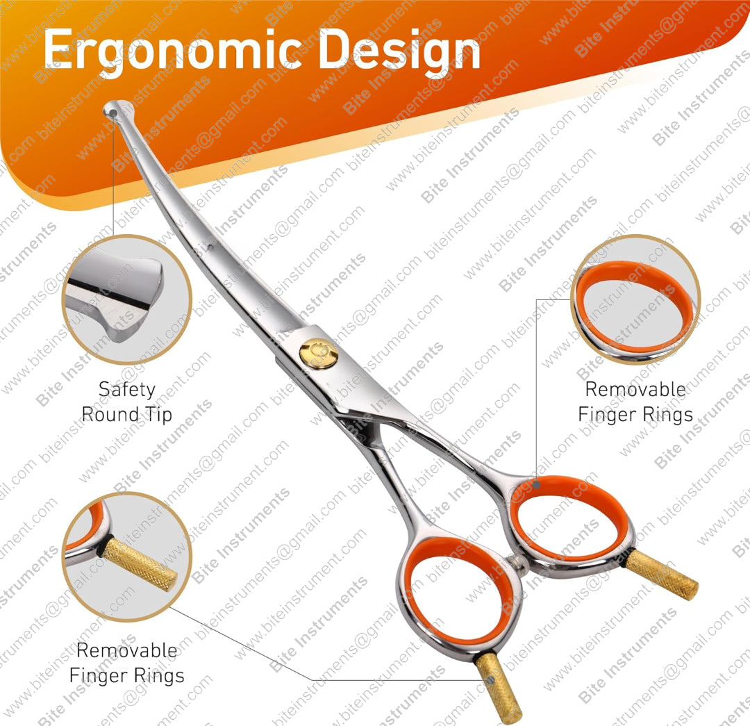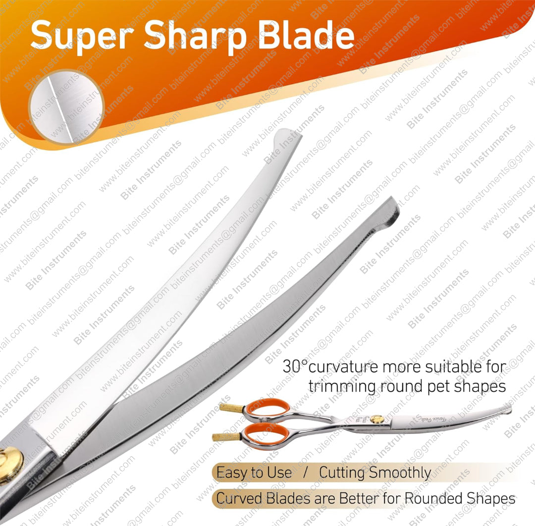 Bite Instruments Curved Pet Grooming Scissors – Professional Dog & Cat Hair Cutting Shears
