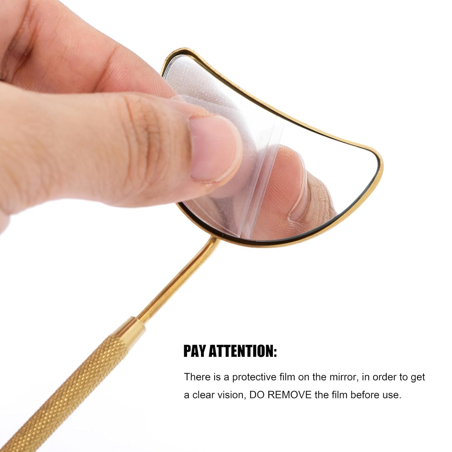- PAY ATTENTION: There is a protective film on the mirror, in order to get a clear vision, DO REMOVE the film before use.
