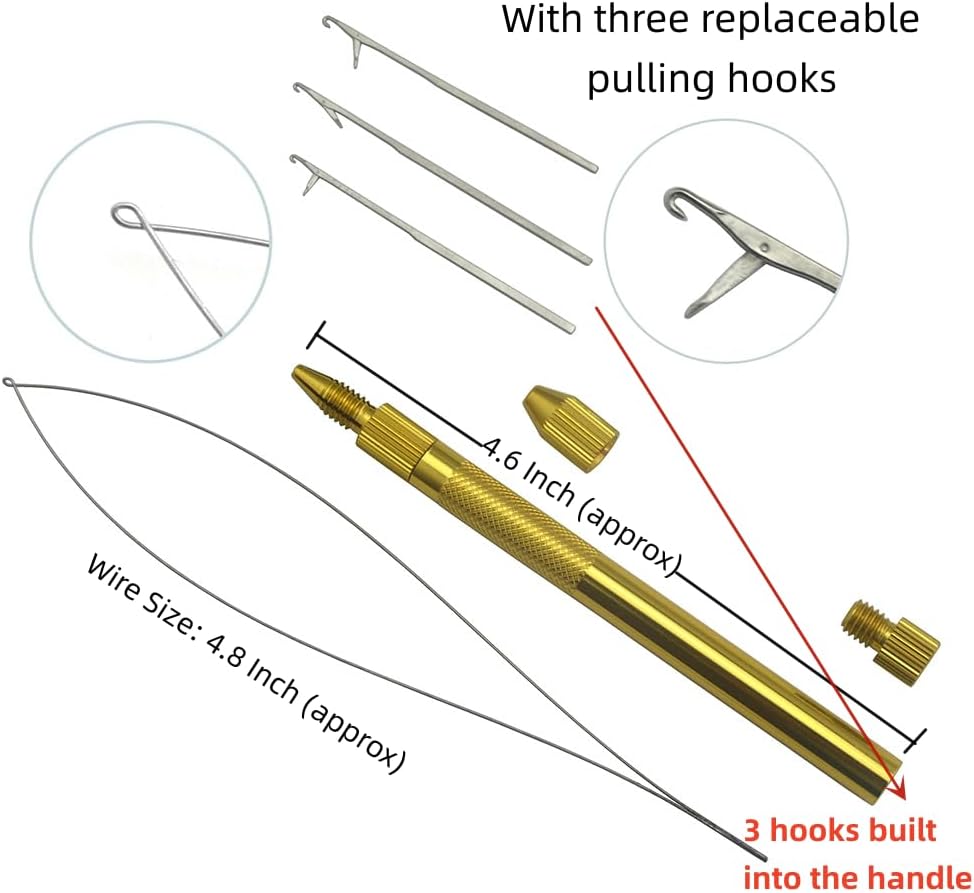 - Pulling Hook Needle Bead Device Tool Kits; The hair extension loop needle kit design with mental handle, can be applied with micro beads and tubes, saving you both time and energy, which is an essential tool for feather hair installation .Our Pulling hook comes with 3 extra changeable hooks, it built into the handles. It’s not easy to lose.