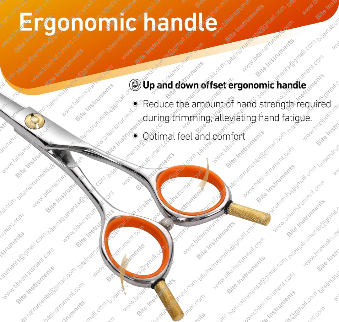 • sharp and Fine Cut – These dog & cat grooming scissors are sharpened by Bite Instruments . Experts check the scissors’ sharpening one by one. Consequently, the blades of these pet grooming scissors are extremely sharp, and the cut is very fine, precise, and fast, It works very well on any type of coat, regardless of whether it is thick, wiry, or curly.