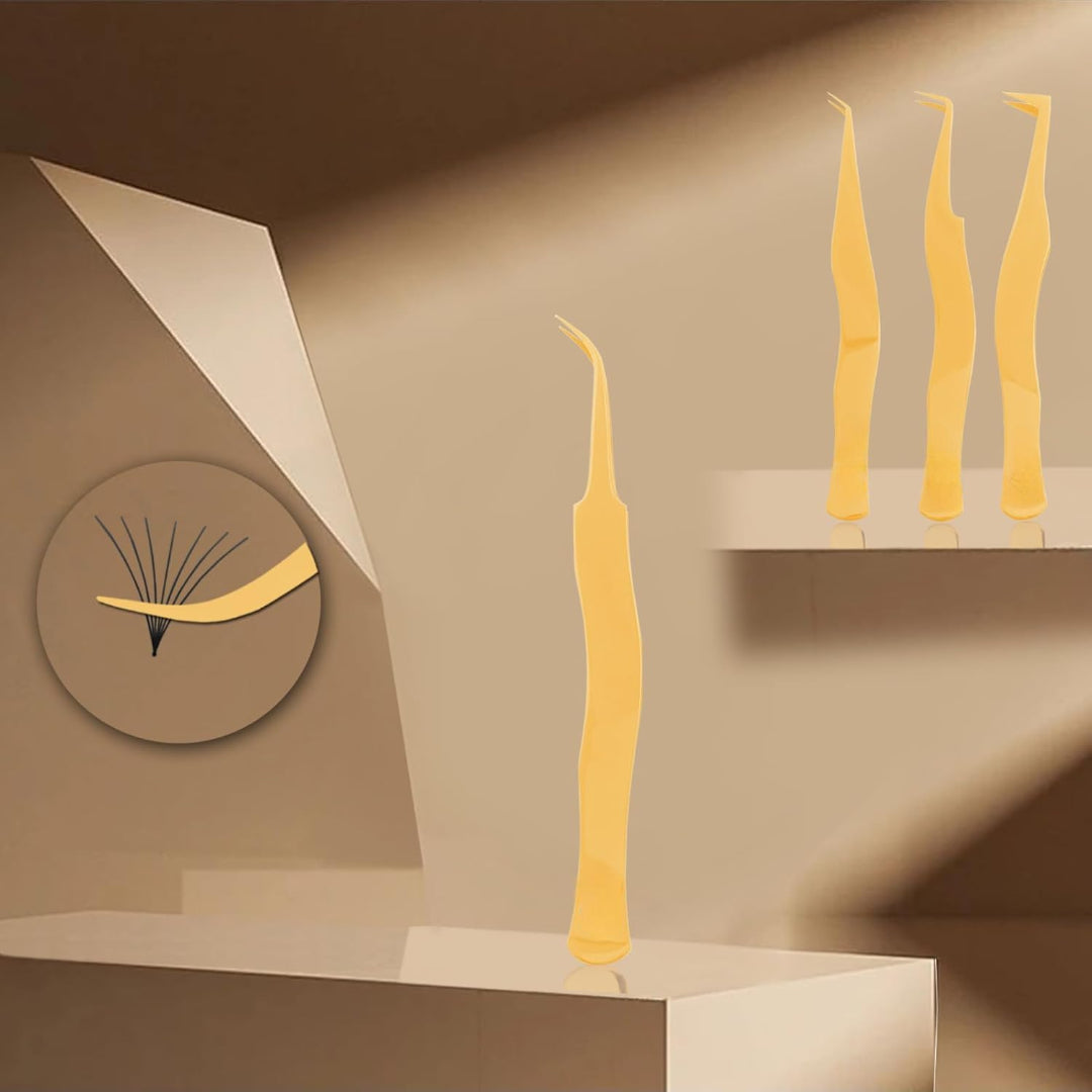 - Angled Volume Tweezer: Designed for creating and applying volume fans. The specific angle allows for a secure grip on multiple lashes for perfect fanning.