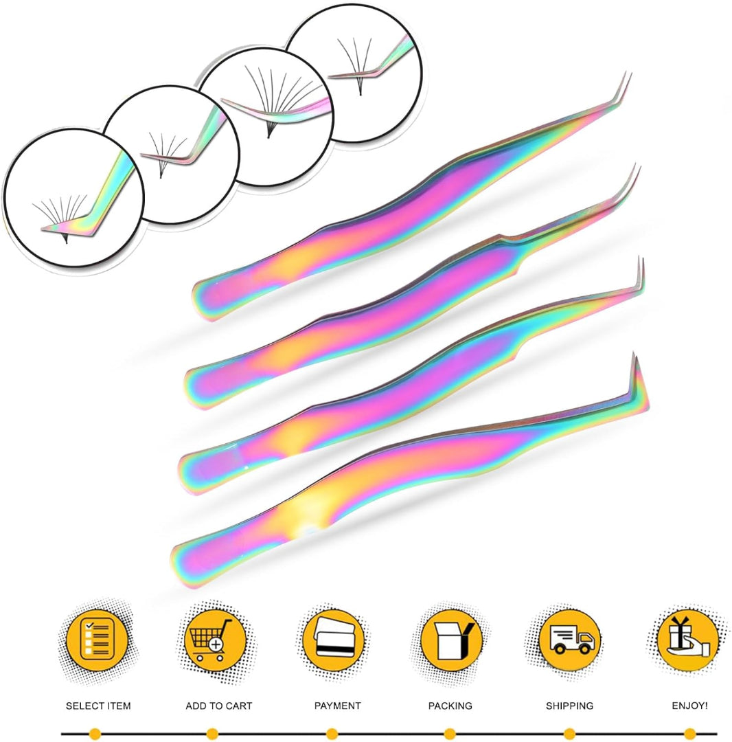 Key Features:4-piece set includes essential tweezers for various techniques.