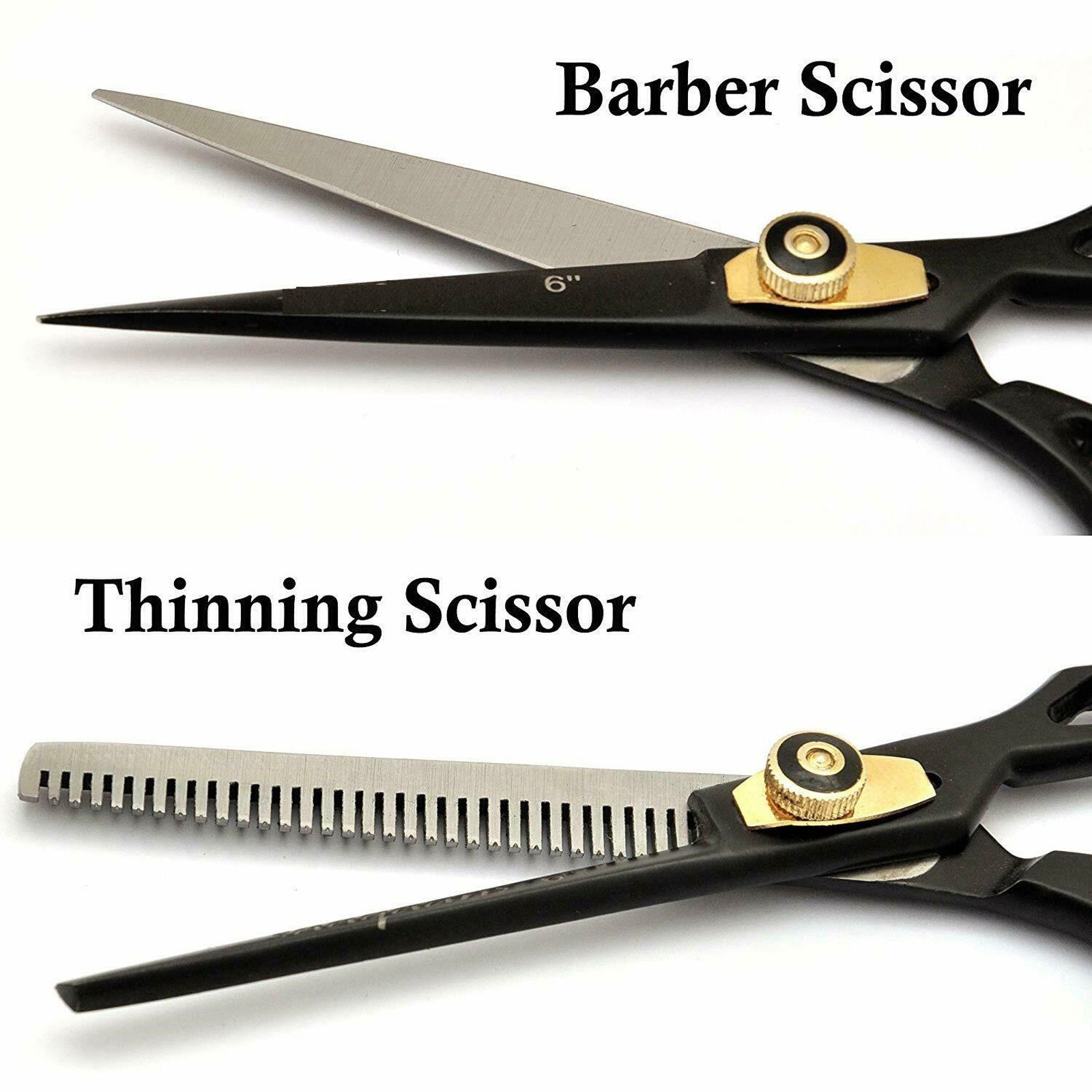 - You will get 1 x Barber Scissor + 1 x Thinning Shear + 1 x Straight Edge Razor + 1 x Hair Comb with a Luxury Scissors Case / Pouch.