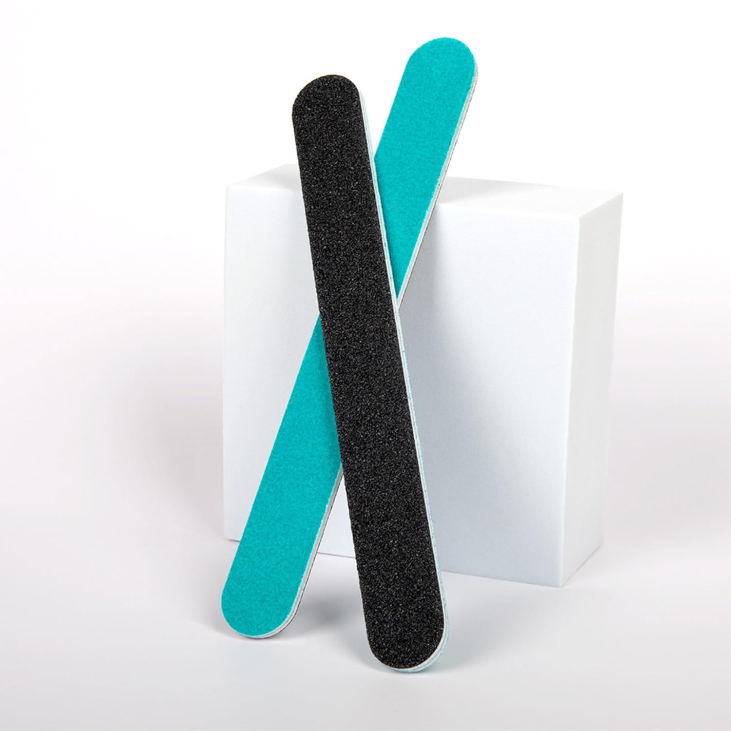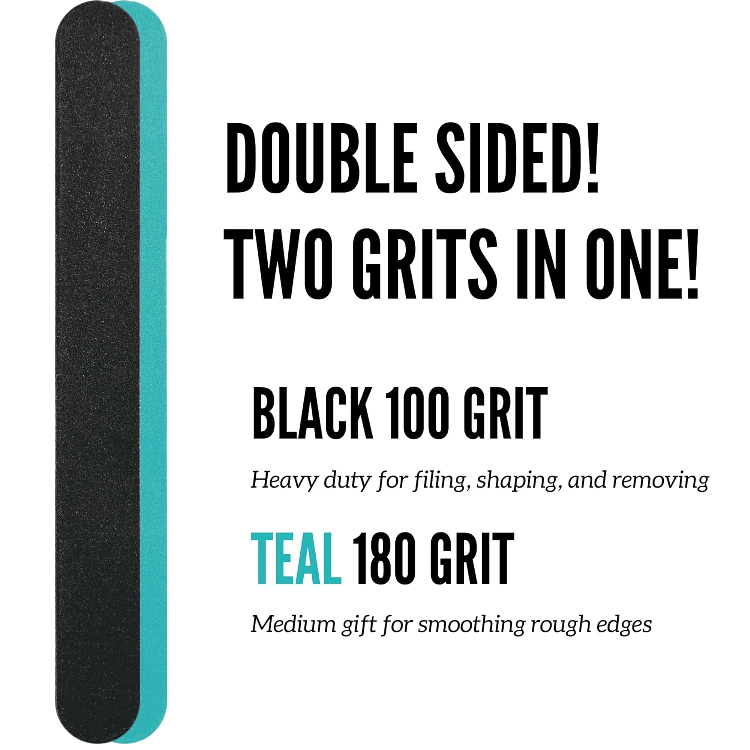 - It has a double-sided diamond nail file, including 12 pack black nail files, one side has a grit of 100, one side has a grit of 180, and the middle is a foam layer. The surface is made of high-quality emery board material, which is very wear-resistant.