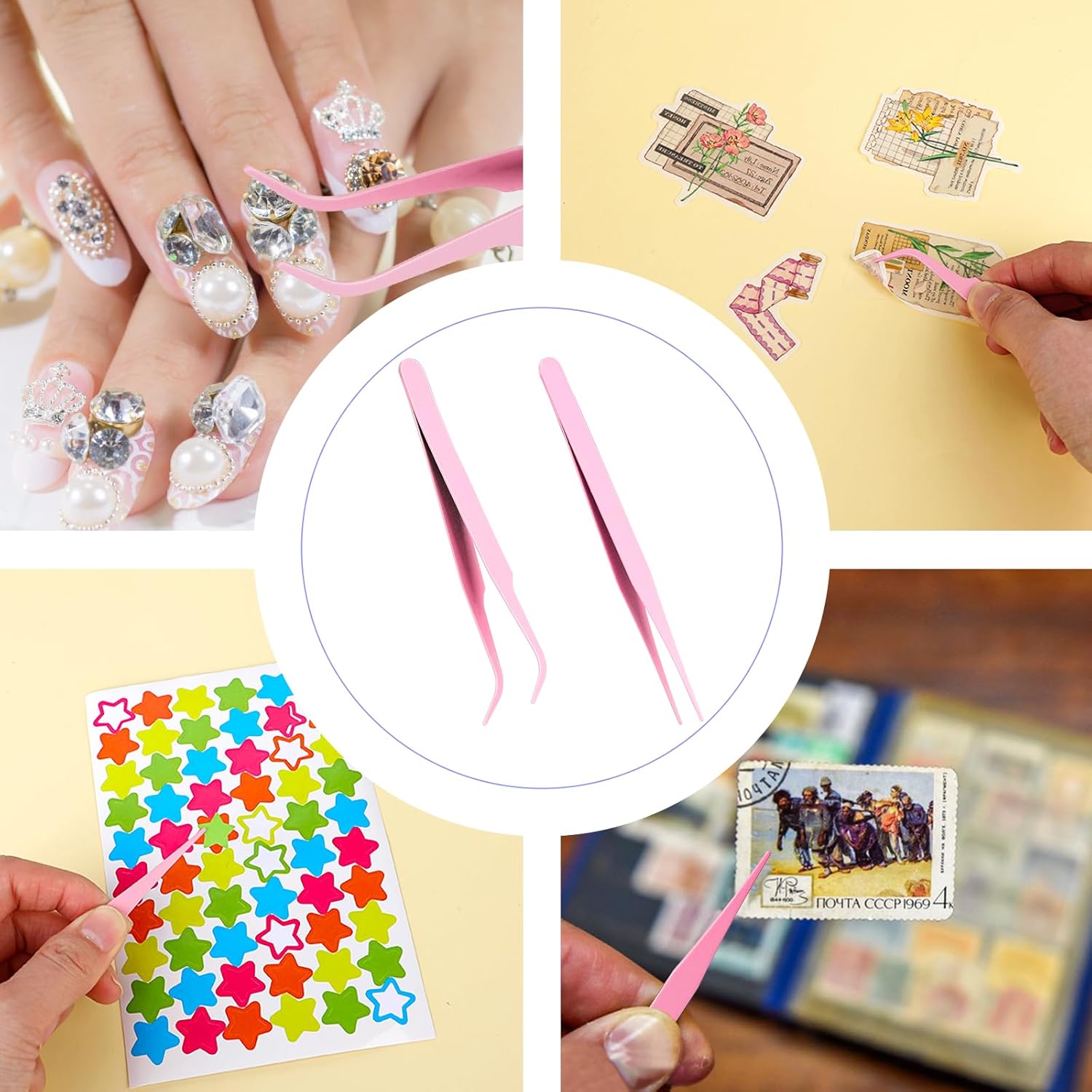 Each tweezer is crafted from high-quality stainless steel and features a vibrant pink finish for a touch of style. The lightweight and ergonomic design ensures a comfortable grip, reducing hand fatigue and allowing for precise, controlled applications.