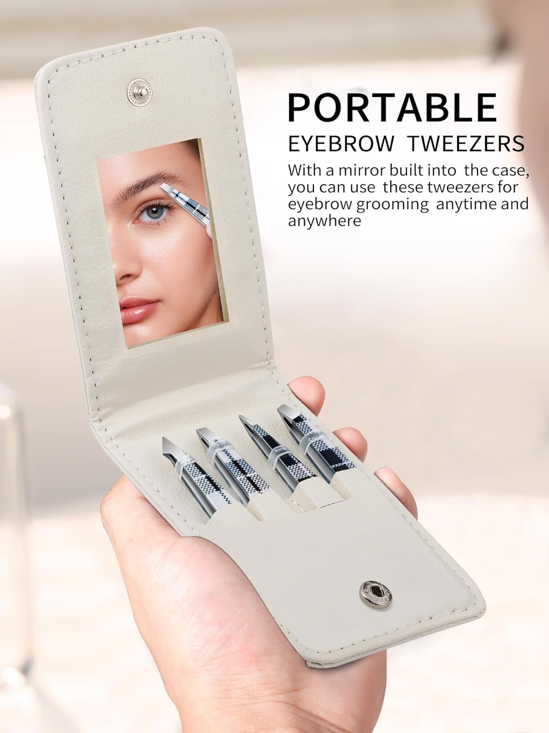 • PERFECT FOR ON-THE-GO: The ergonomic design of these tweezers ensures a secure grip and precise control. Even the finest, most stubborn hairs are no match for your grooming prowess. The compact and sleek design of the case makes it an ideal travel companion. Slip it into your handbag or luggage, and you can maintain your impeccable look anywhere, anytime.