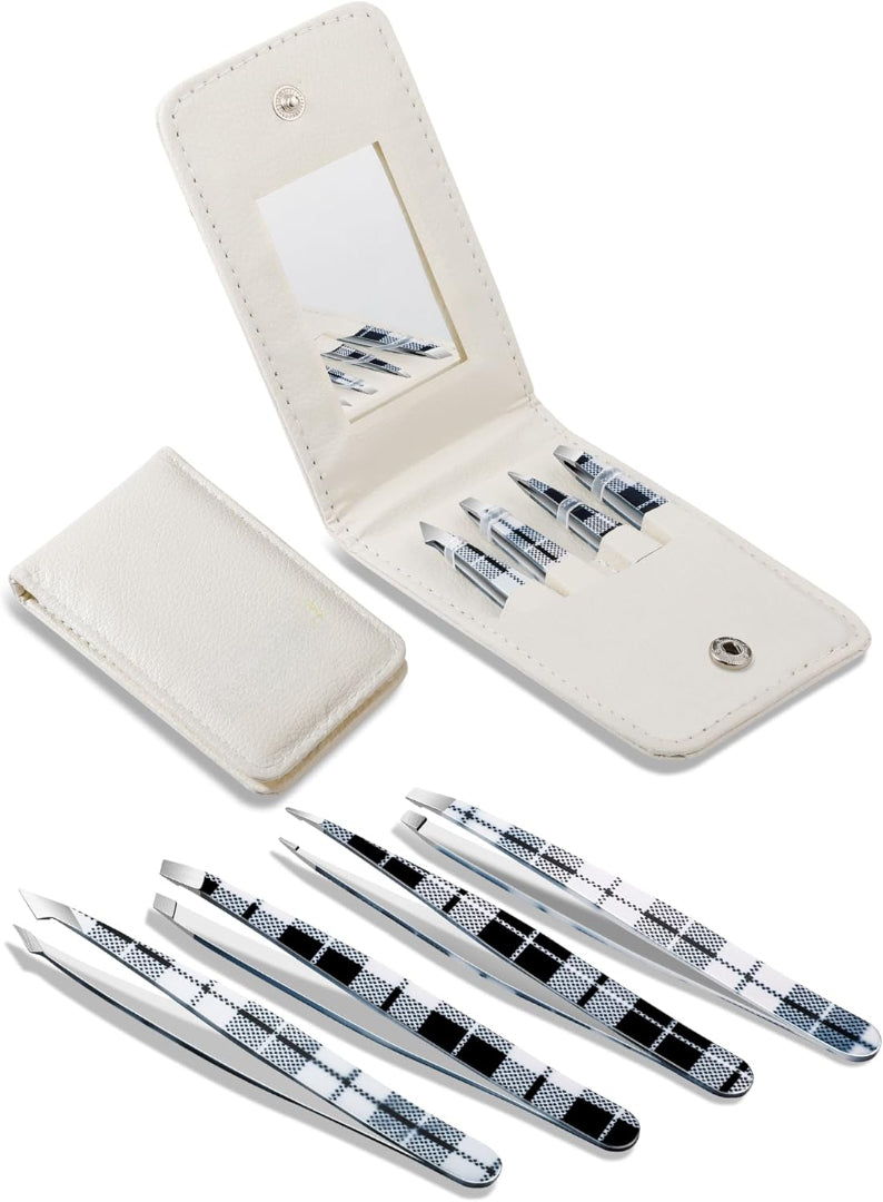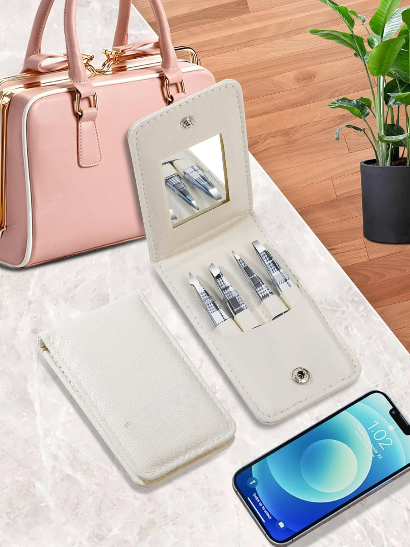 • PROTECTION WITH CASE: The carrying case provides a safe, organized space for your professional tweezers. Each tweezer has an individual pocket, so the tweezers can be inserted into the case when not in use, ensuring they won’t fall out or get lost. Our 4pcs tweezers set for women facial hair is kept safe and secure in this stylish case.