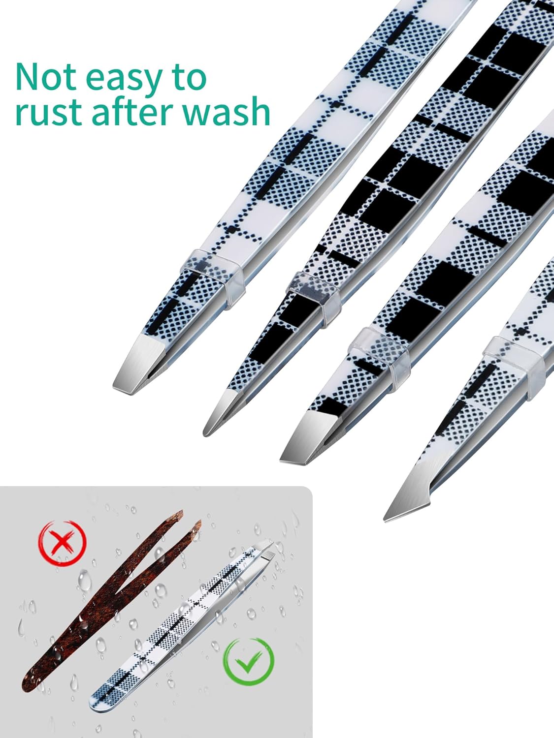 • HIGH-QUALITY MATERIAL: Made of premium stainless steel, these tweezers for women and men ensure durability, longevity, and easy cleaning. Perfectly aligned hand-finished tips protect your delicate skin and prevent allergic reactions. Clean with water or wipe with alcohol after each use to maintain cleanliness and ensure the best tweezers last long.