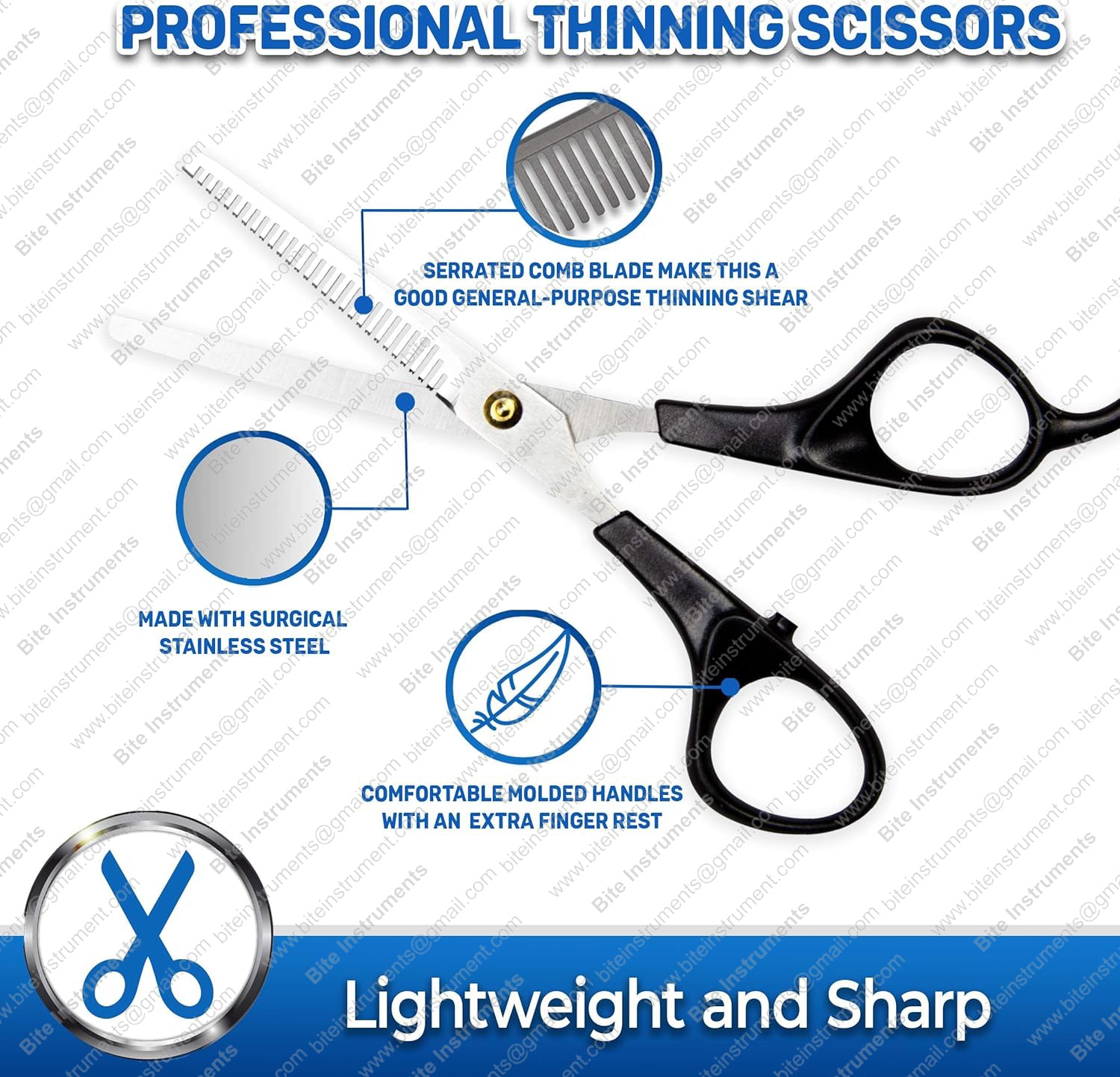 Bite Instruments Professional Thinning Scissors with Toothed Blade Pet Grooming Tools