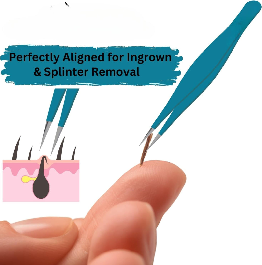 - Finest Stainless Steel for Durability: Crafted from surgical grade stainless steel, our splinter tweezers for splinter removal kit are built to last. making them ideal for both personal & esthetician use. The strong metal ensures long-lasting performance, maintaining pin point sharpness. Needle nosed tweezers sharp tip is a reliable ingrown hair removal tool for daily grooming use. If used in your bathroom, travel bag & professional set, The high end tweezers for fine hair removal is easy to clean.