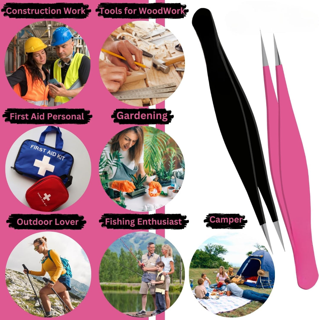 - Multi-Functional Precision Tweezer Thin Tip for Versatile Use: Best tweezers for plucking fine hair are perfect for a wide range of applications. Whether it’s for grooming, eyebrow plucked, blackhead, tiny glass , beard ingrown hair or splinter removal, the versatile design makes them a necessary Black & Pink tweezers with point for precision work in any situation .Even crafting tasks that require fine detail. The ingrown hair tweezer eyebrow allow for accurate work on even the smallest objective.