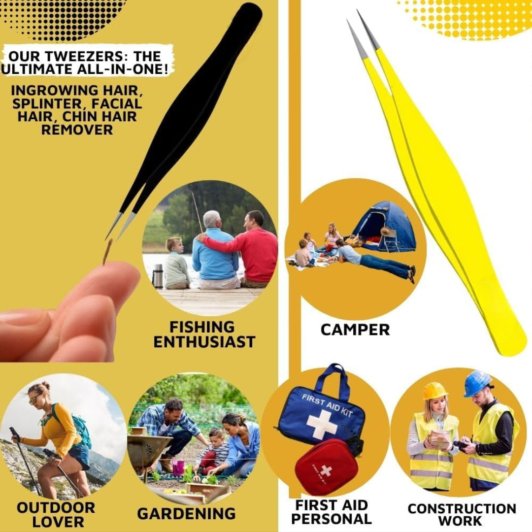 - Finest Stainless Steel for Durability: Crafted from surgical grade stainless steel, our splinter tweezers for splinter removal kit are built to last. making them ideal for both personal & esthetician use. The strong metal ensures long-lasting performance, maintaining pin point sharpness. Needle nosed tweezers sharp tip is a reliable ingrown hair removal tool for daily grooming use. If used in your bathroom, travel bag & professional set, The high end tweezers for fine hair removal is easy to clean.