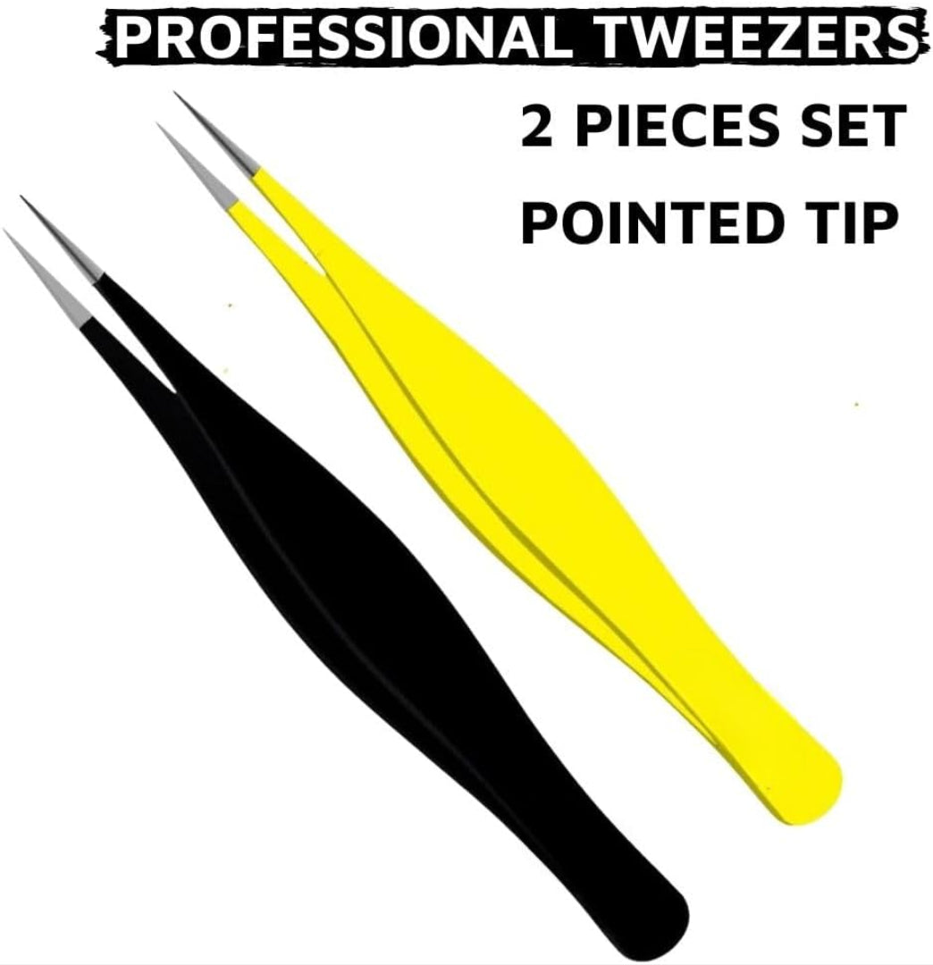 - High Precision Point Tip Sharp for Focused Removal: Black & Pink needle tweezers precision professional feature sharp needlepoint that are ideal for removing ingrown hair, splinters, Chin hairs, small tiny hairs, eyebrows and other small items with precision. The needle tip tweezers for facial hair removal for women plucked allows you to focus on even the smallest hairs without affecting its surroundings. With these super fine tipped professional-grade most precise tweezers for fine facial hair.