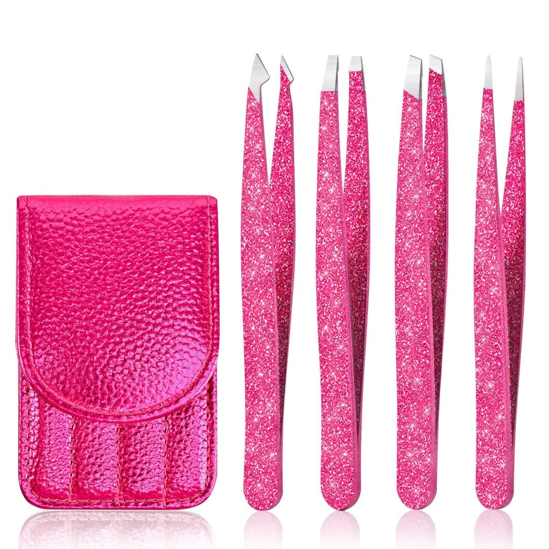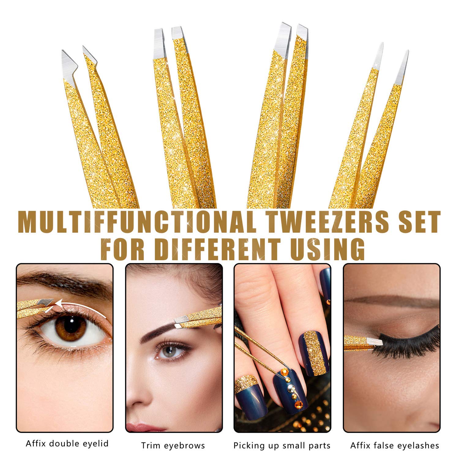 Eyebrow Tweezer Set, 4 Pcs Professional Stainless Steel Tweezers for Ingrown Hair Removal