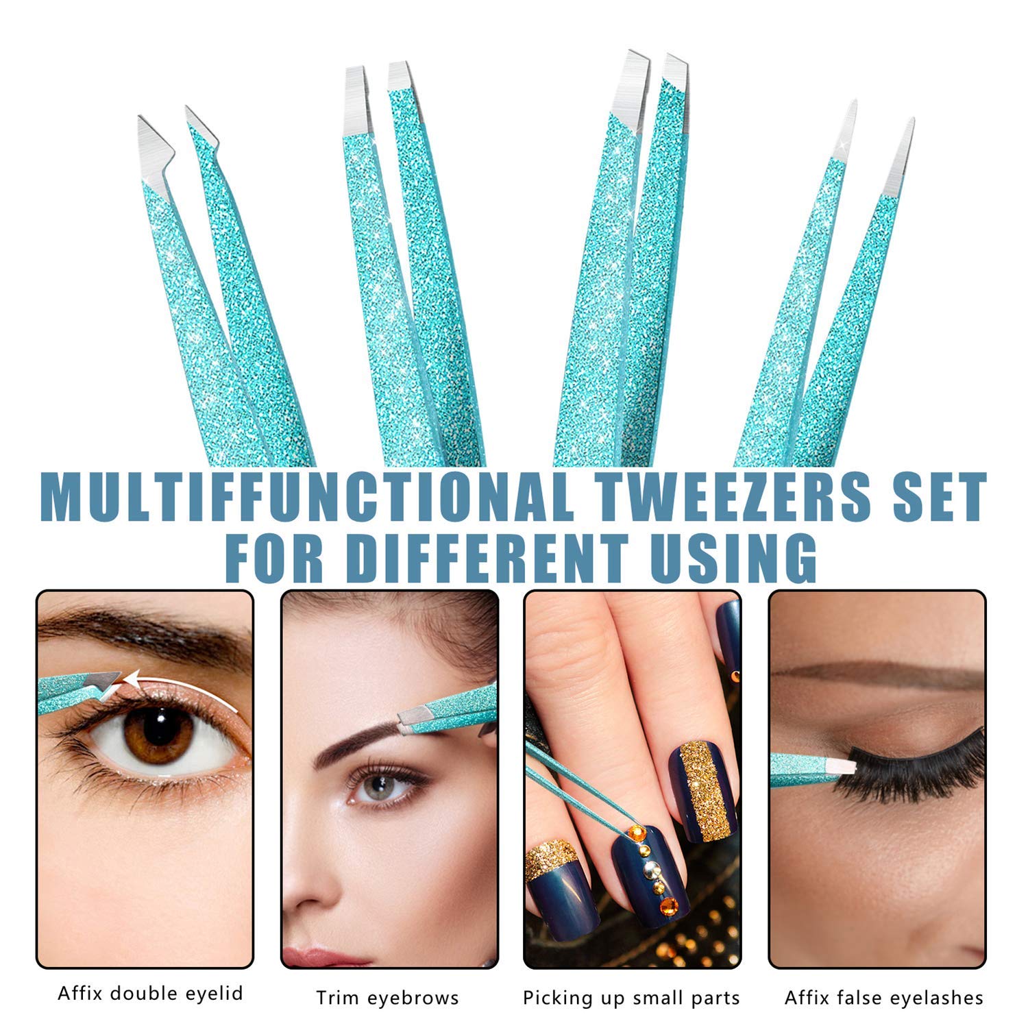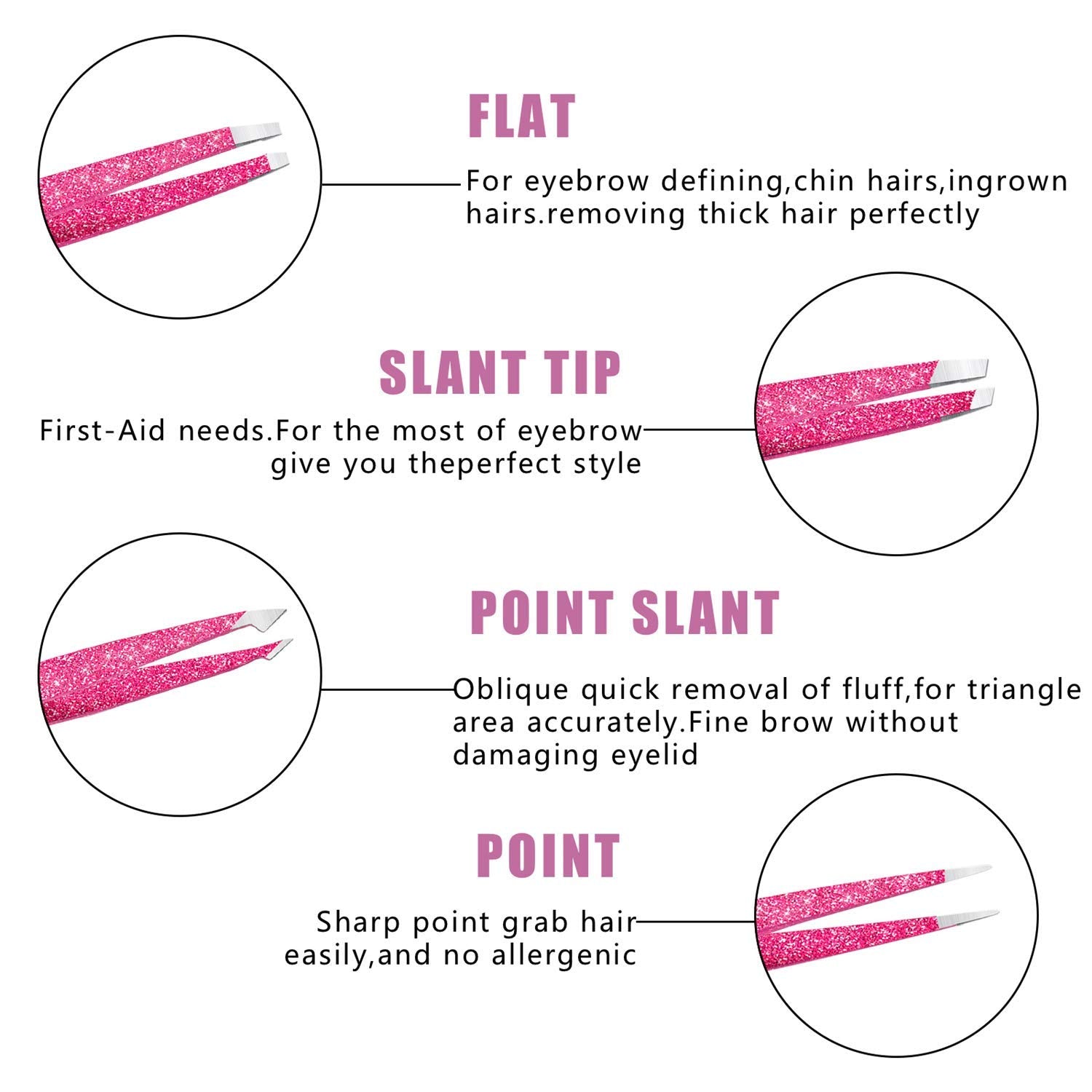 - ❤ 【Multiple Uses-4 in 1 Set】 – 4 different professional precision tweezers are included in this kit ,range from Slant Tweezer, Pointed Tweezer, Pointed-Slant Tweezer, Flat Tweezer. They can not only work well for plucking eyebrows precisely and griping or removing small and short individual hair, but also perfect for false lashes and double eyelid affixing. Even you can use these precision tweezers for craft, jewelry-making, electronics, laboratory work, etc.