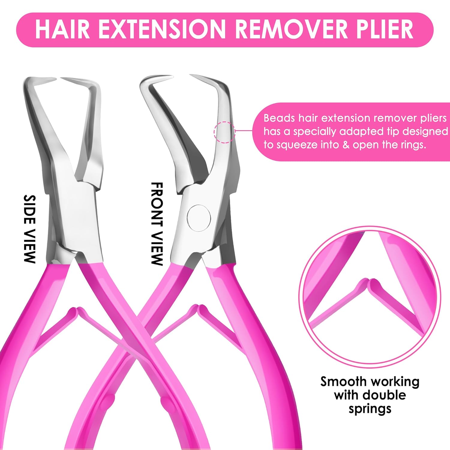 - Hair extensions Remover Plier: Micro Beads Remover Pliers 5.5 inches have a specially adapted tip designed to squeeze into and open the rings. A unique handle allows for a comfortable and strong grip. Double spring-loaded for effortless use.