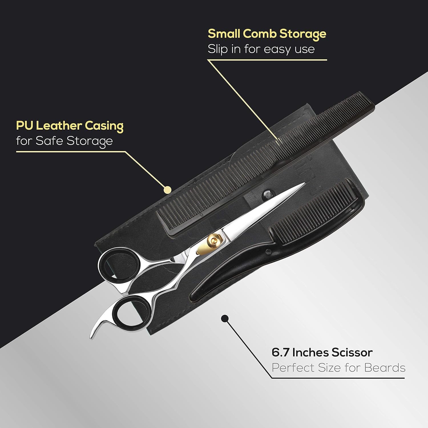 Premium Beard Trimming Scissors Set 6.5 Inches with Precision Grooming Tool with Combs | Bite Instruments