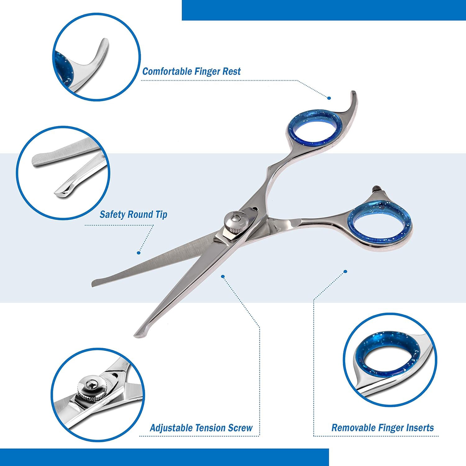 - Professional, Beautiful, Sharp and high-quality pet grooming scissors for a smooth, fast cut for the best pet groom ever. The sharp rounded tip will make it your go to shear even when it come to your pets face, ear, nose, eye and paw. Or any style that requires precision and touch ups.