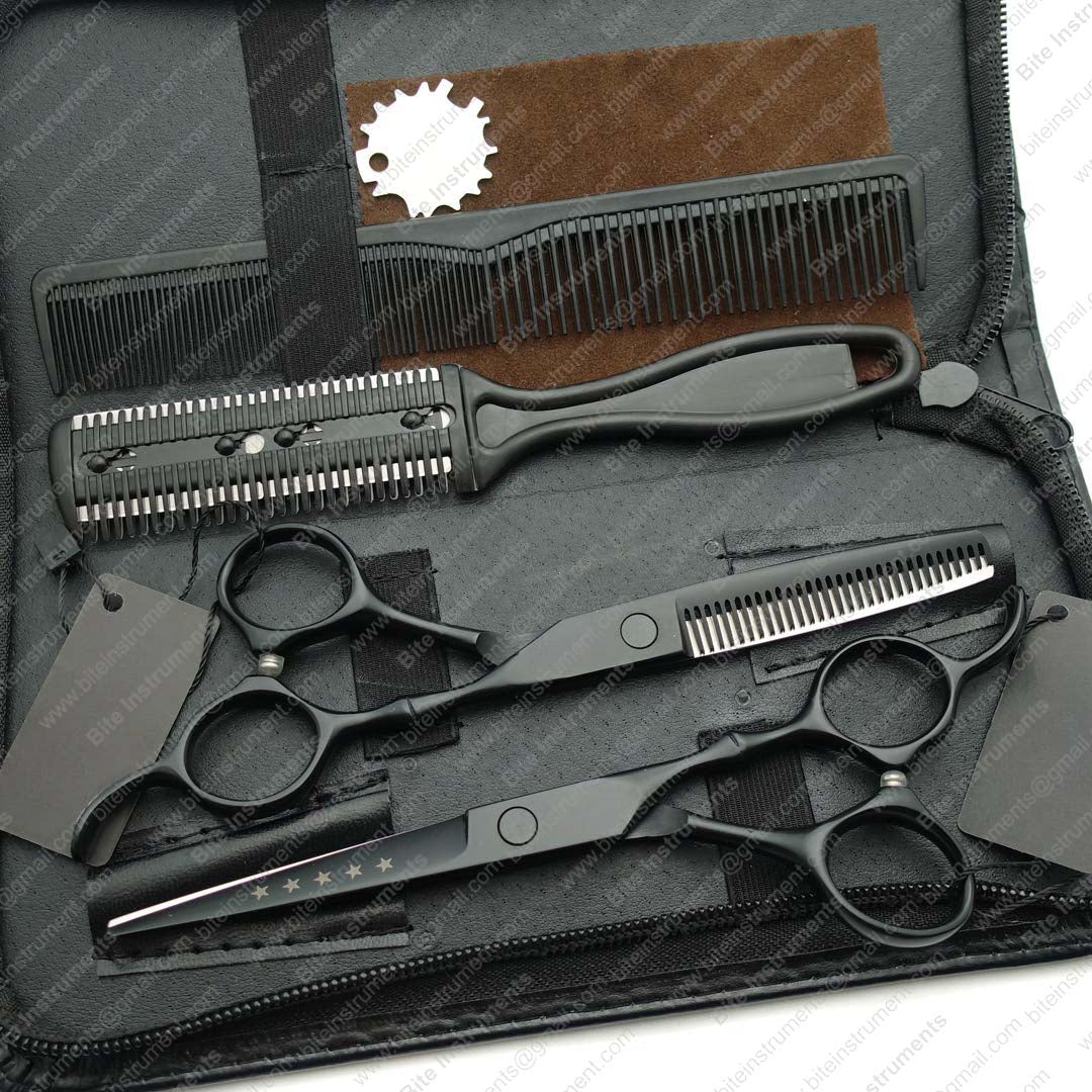 Professional 6.0 inch Barber Hair cutting &Thinning shears with Combs Lether Scissors Case