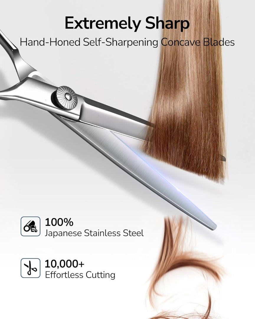 • Durable & High-Quality: Crafted from professional-grade materials (implied by “Professional Hairdressing Scissors Set”) for long-lasting sharpness and reliable performance.