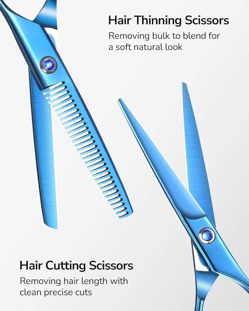 Upgrade your grooming game with this Professional Hair Cutting Scissors & Thinning Shears Kit – precision engineered for barbers, hairstylists, and home users who demand salon-quality results.