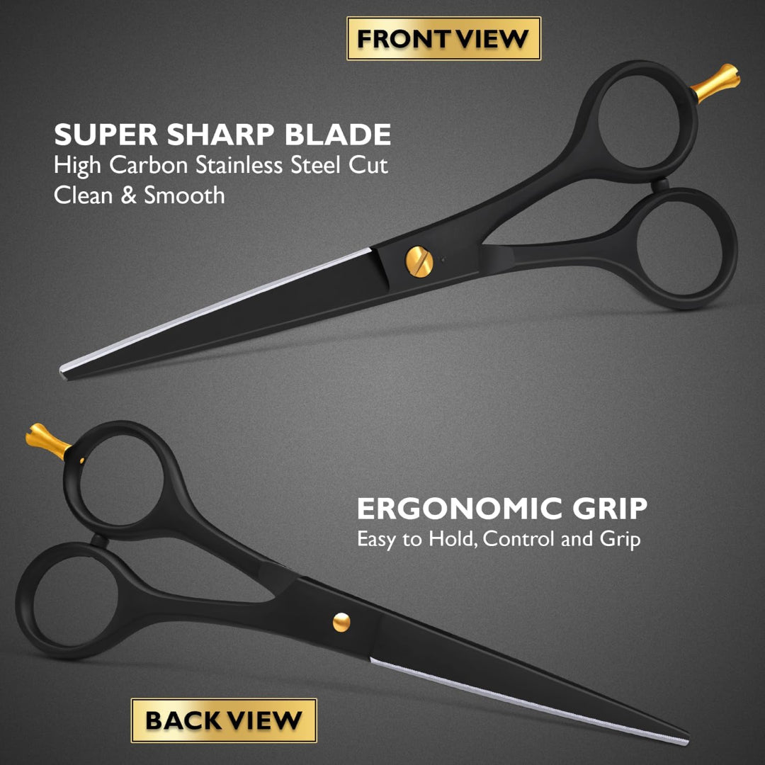 These Professional Black Coated Hair Cutting Barber Scissors, designed for barbers, stylists, and at-home haircuts. Crafted from high-quality stainless steel with a sleek black titanium coating, these scissors deliver durability, sharpness, and a modern professional look.