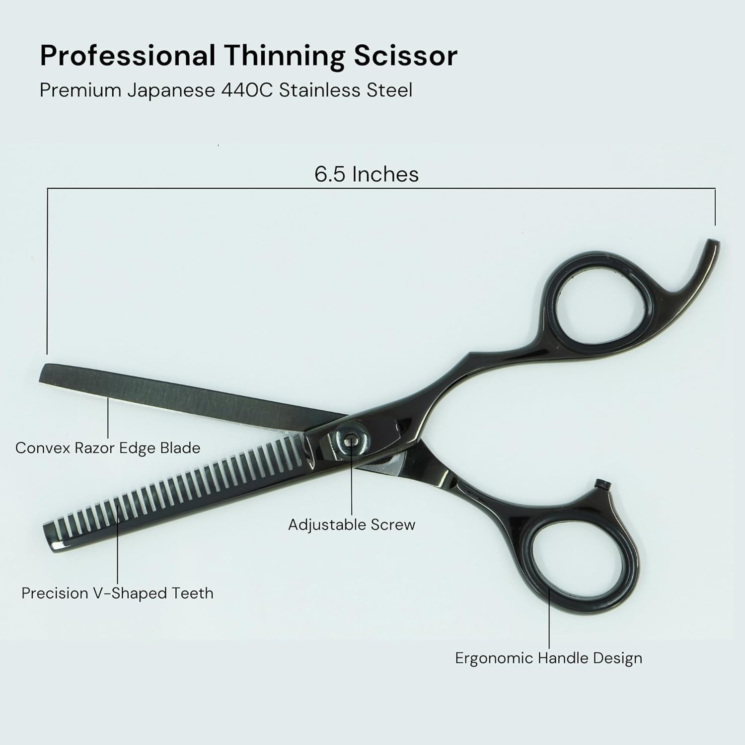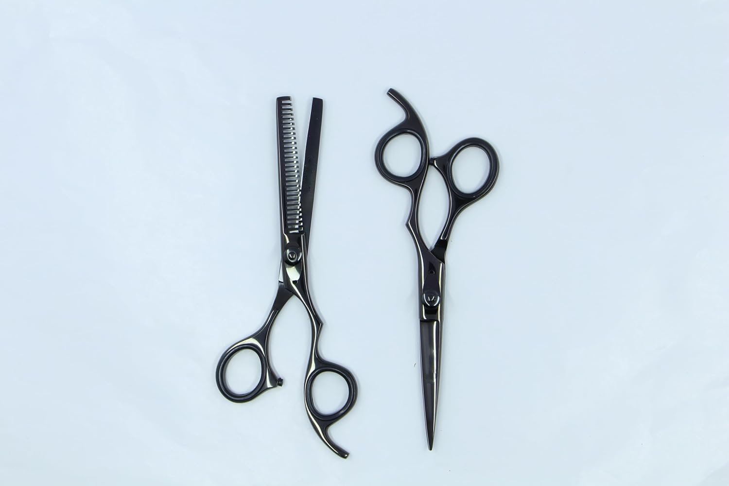 - Comprehensive 5-Piece Set: Includes a classic straight razor, a sharp straight cutting shear, a versatile curved shear, a blending thinning shear, and a durable black styling comb, providing all the necessary tools for a complete haircut.