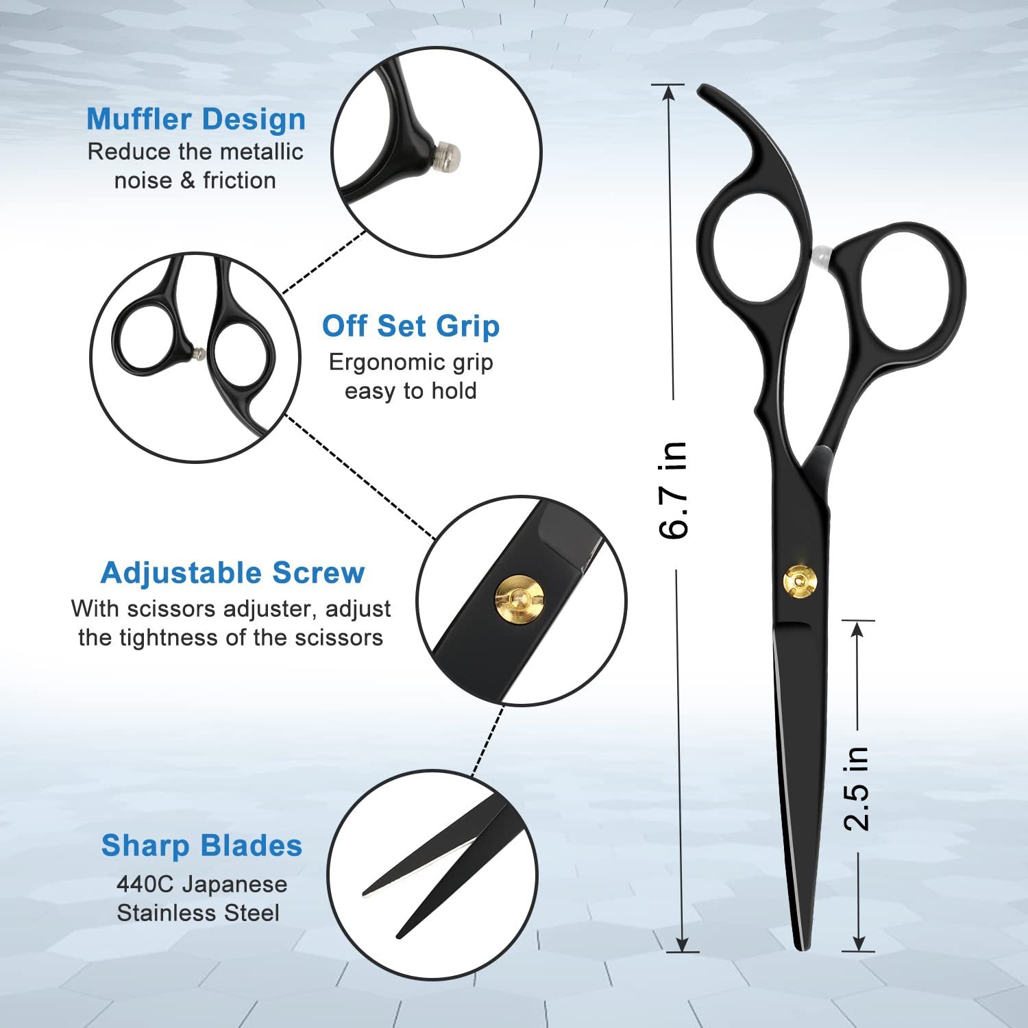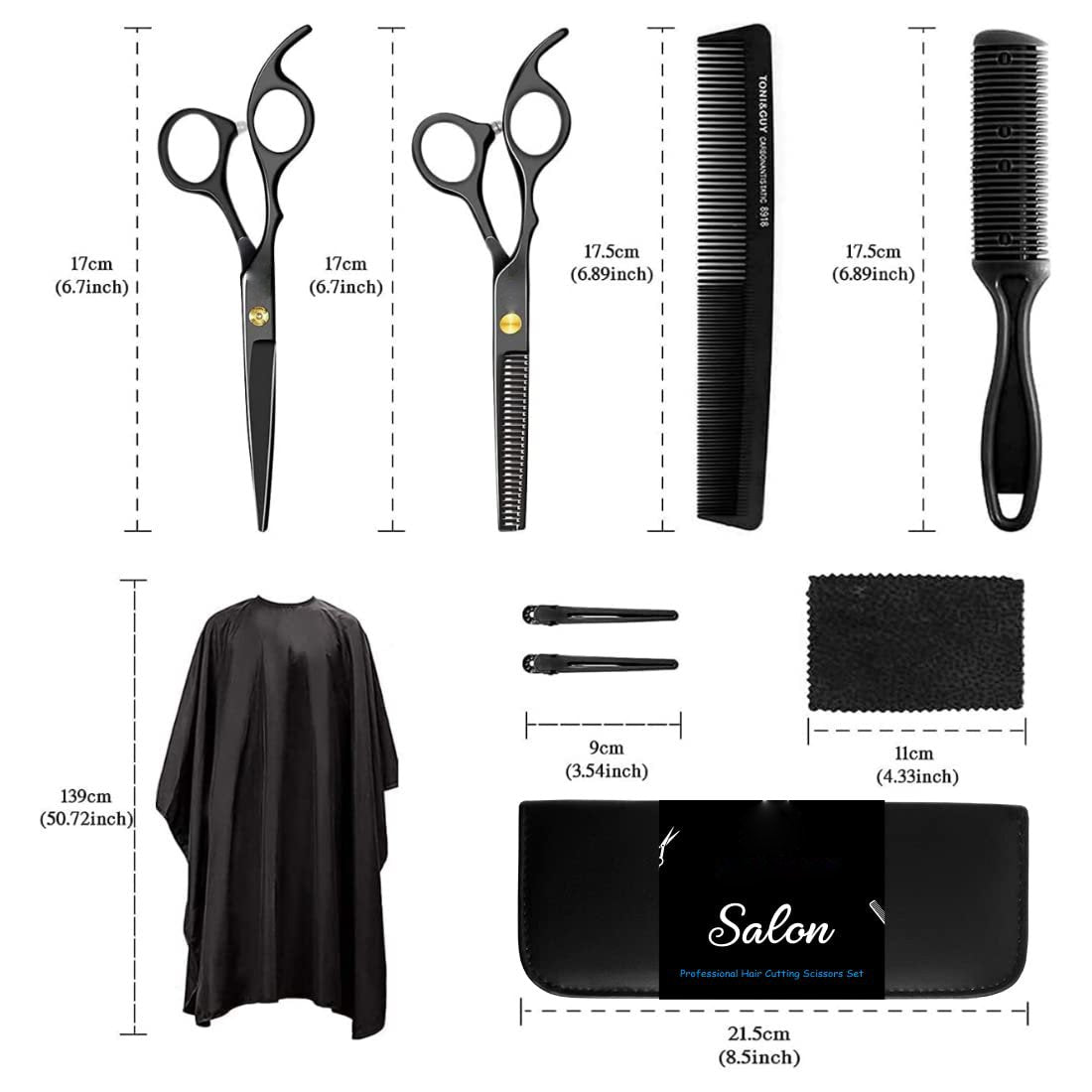 - Sleek Black Design: All scissors, comb, and cape feature a professional black finish, offering a modern and cohesive look.