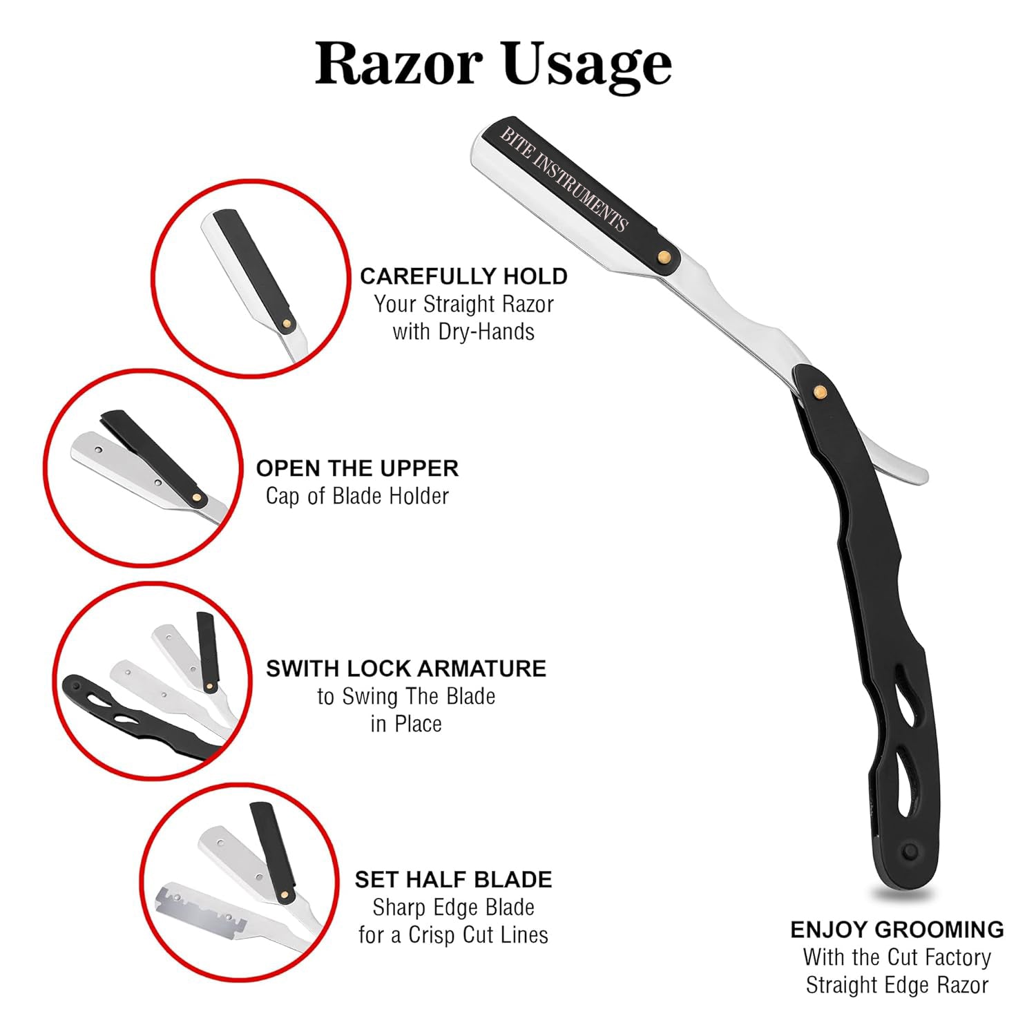 Step into a world of refined grooming Straight Razor, a testament to precision and heritage, available from Bite Instruments.