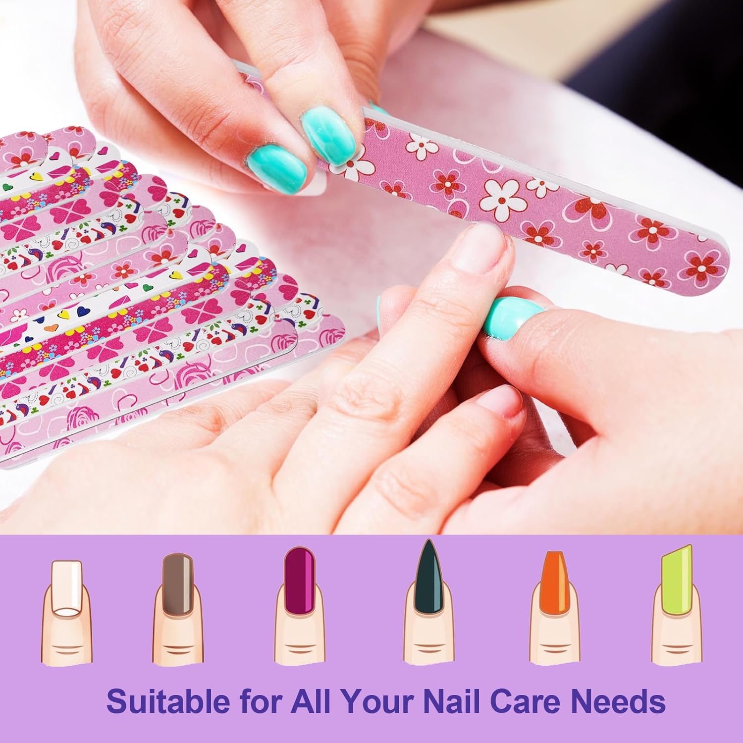 - Dual-Sided Nail Files with 100/180 Grit: Each set includes 24 double-sided nail files, featuring a coarse 100 grit texture on one side for acrylic and thick nails, and a fine 180 grit texture on the other for buffing away imperfections on the nail surface and refining natural nails, smoothing up your nail edge with refined shape.