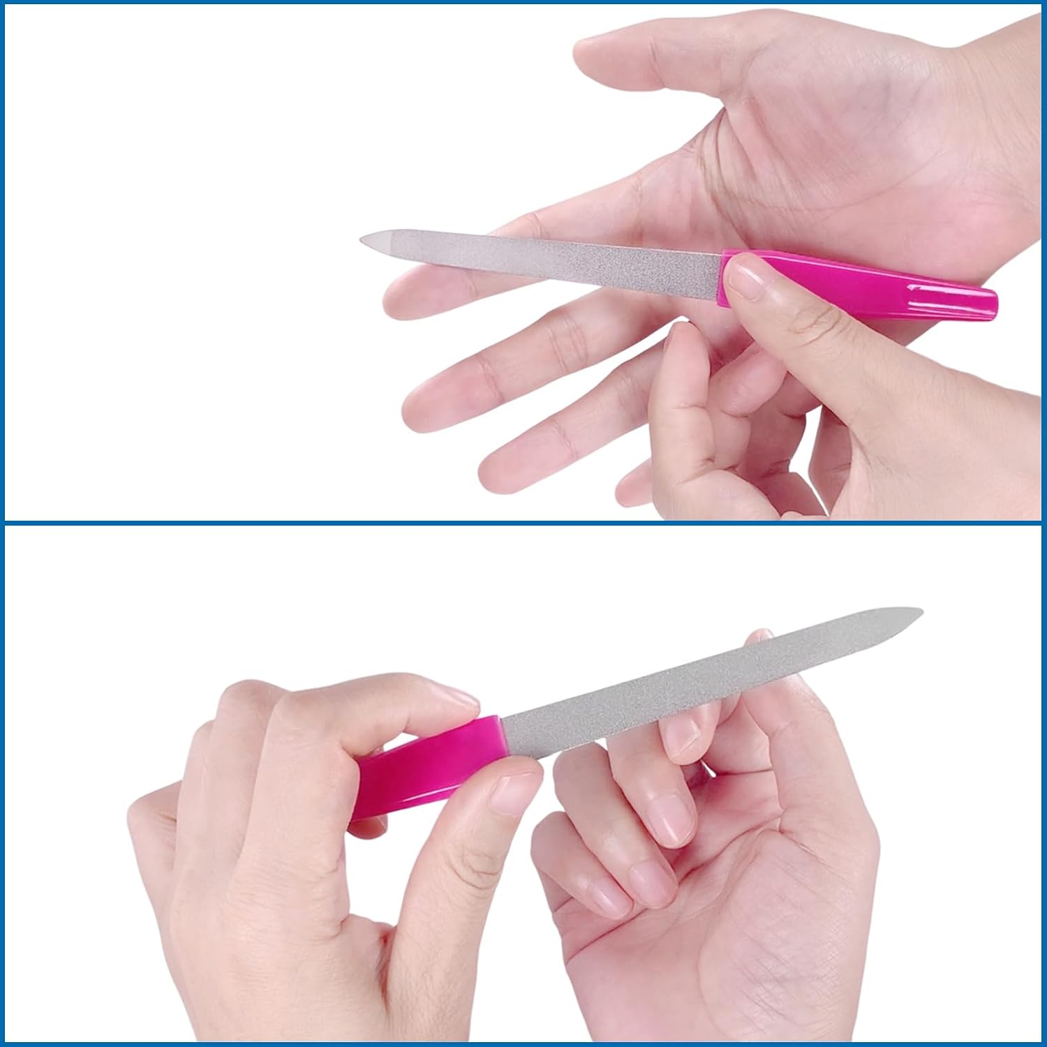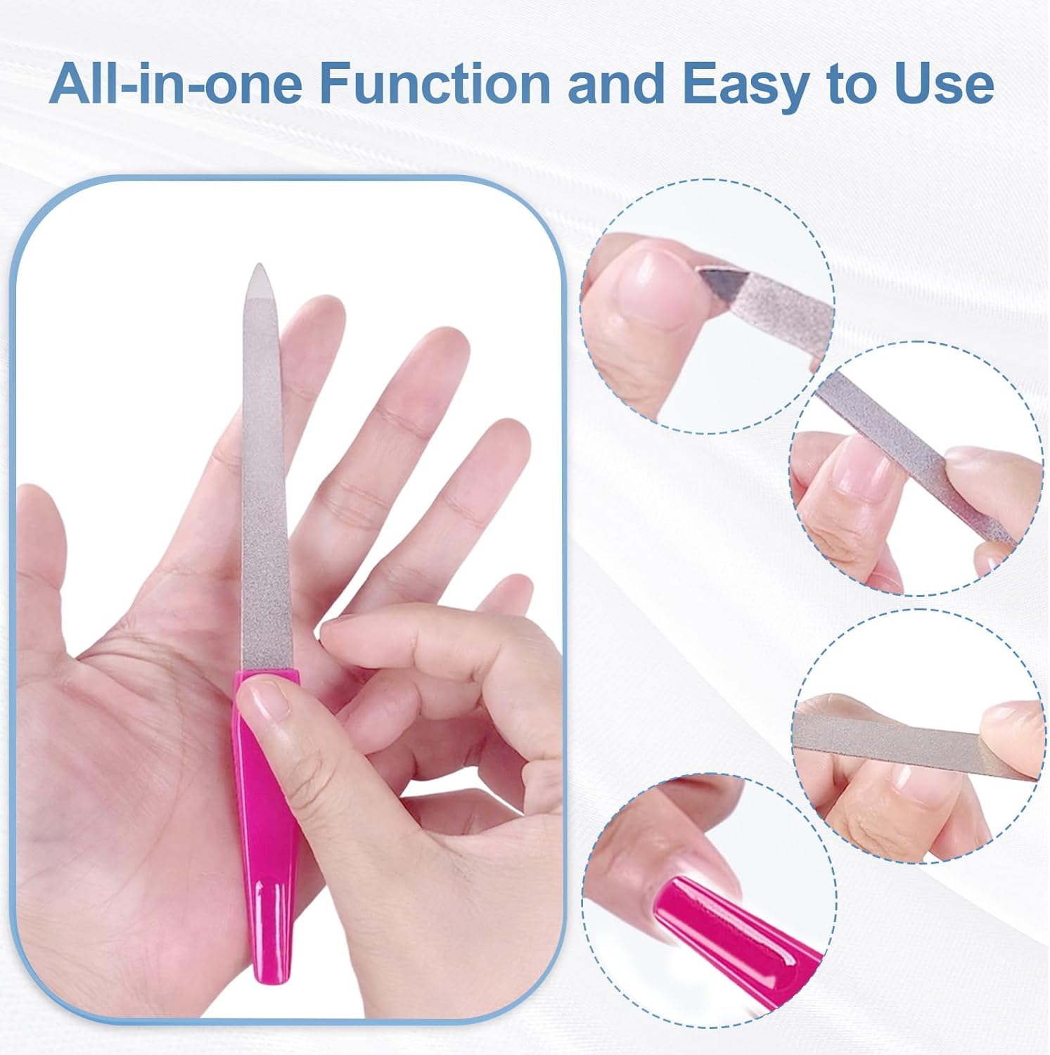 - Dual-Sided Nail Files with 100/180 Grit: Each set includes 24 double-sided nail files, featuring a coarse 100 grit texture on one side for acrylic and thick nails, and a fine 180 grit texture on the other for buffing away imperfections on the nail surface and refining natural nails, smoothing up your nail edge with refined shape.