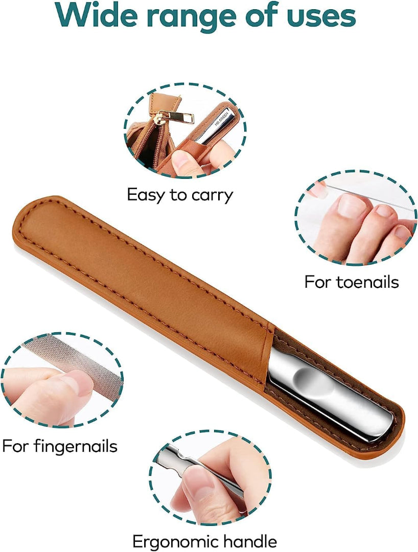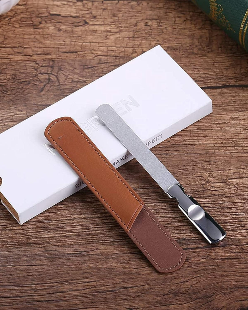 Stainless Steel Nail File with Anti-Slip Handle and Leather Case Bite Instruments