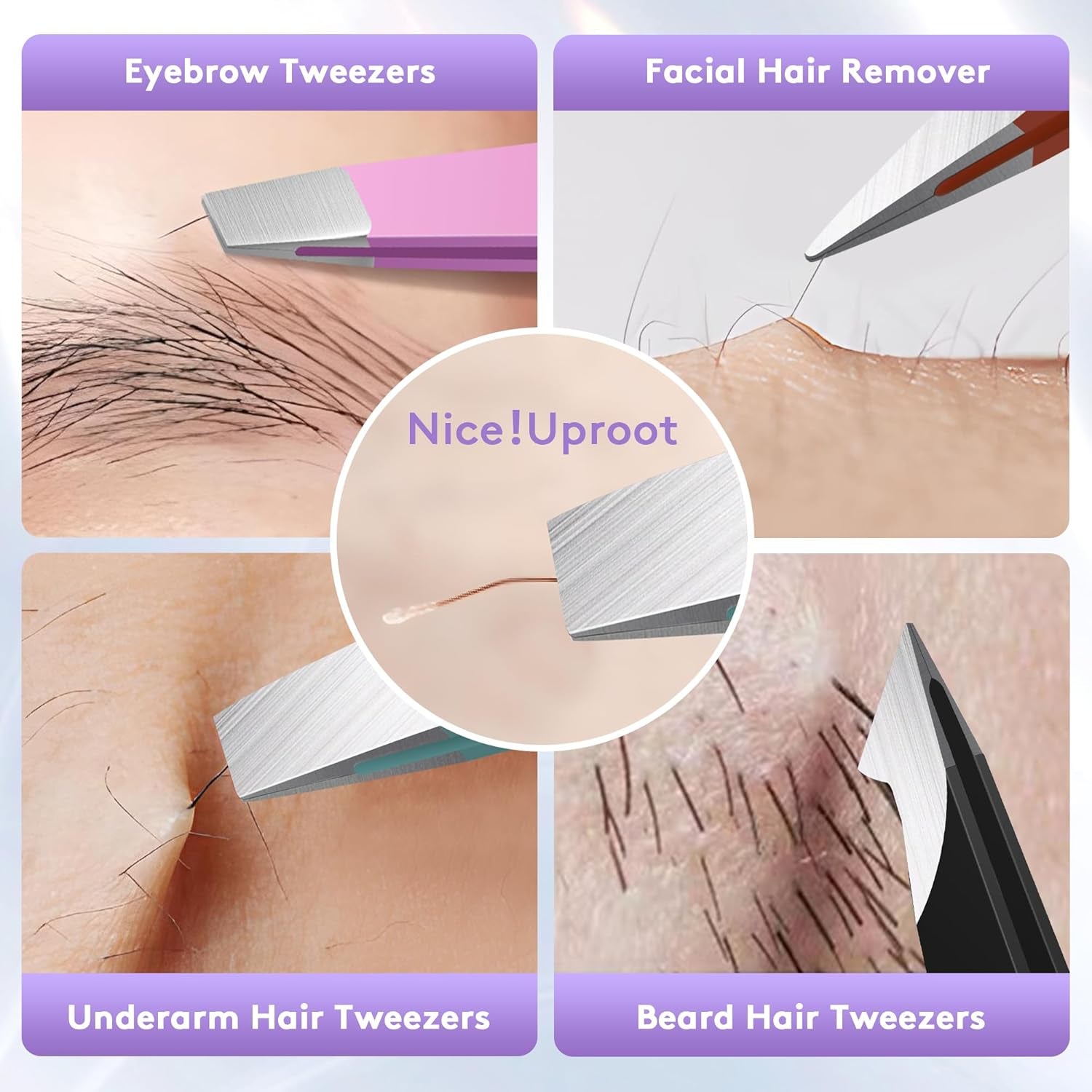 Tweezers for Women Facial Hair, 4 Pack Tweezer Set for Eyebrow Ingrown Hair